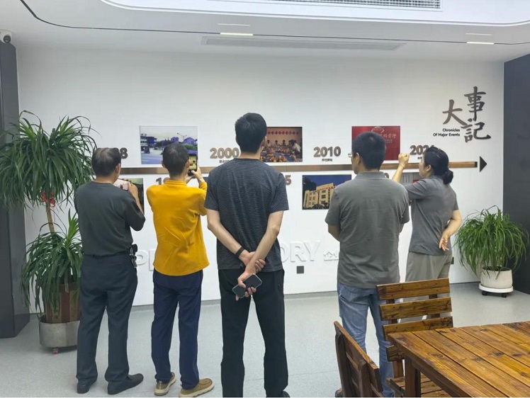 Deretter ledet daglig leder Yu kundene til å besøke gruppens hovedkvarter. Denne "Chronicle" dokumenterer hvert viktig øyeblikk siden vårt etablissement. Som snart YU -daglig leder kom inn i hovedkvarterets kulturelle utstillingshall, pekte han på de gamle bildene og tekstene på veggen og begynte å sakte fortelle klienten om selskapets historie. "I 1988 startet vi fra et lite verksted. På det tidspunktet satte vi prinsippet om å" bygge bedriften basert på kvalitet og behandle mennesker med integritet ". Nå har 37 år gått, og denne opprinnelige intensjonen har aldri endret seg." I utstillingshallen vises også forskjellige sertifikater for utmerkelser, kvalifiseringsdokumenter og tjenestesaksstudier oppnådd av Enterprise. Da kundene stoppet for å se på, la Yu til, "Vi produserer ikke bare 'maskinvare' for våre produkter; vi må også tilby 'tjenester'. Akkurat som det som er skrevet på denne veggen, 'forvandle kundenes behov til vår forfølgelse', er dette prinsippet inngravert i hjertene til hver ansatt."
