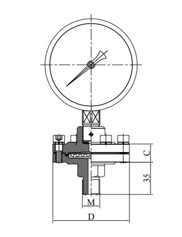 Dette instrumentet er indirekte måling. Isolasjonsmembrandeformasjon Under trykket fra det målte mediet blir tetningsvæsken trykksatt, og trykket overføres til trykket.