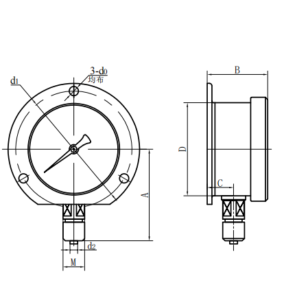 | Ye150 -Ⅲ | 96 | 53 | / | φ 150 | 19 | φ 6 | M20 × 1.5 |