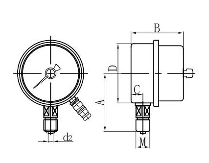 ◆ Påføring: Denne typen instrument er egnet for å måle trykket på væsker, gasser eller damper uten eksplosjonsfare, ingen krystallisering, ingen størkning og ingen etsende effekt på kobber- og kobberlegeringer. Når den er utstyrt med en passende krets, kan den sende en alarm eller automatisk kontroll til trykksystemet som skal måles og kontrolleres.